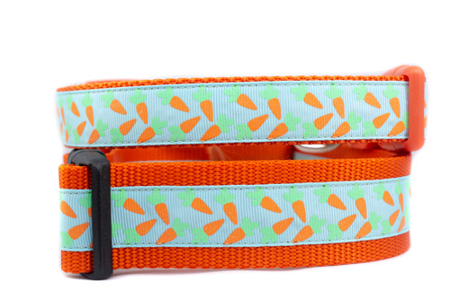 Adorable Easter collar for spring. Orange and glittery design with a feast of carrots for the Easter bunny to snack on. Get your daily allowance of vegetables with this adorable carrot collar!