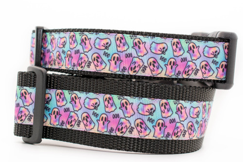Featuring an enchanting pattern of colorful ghosts exclaiming "BOO", this collar is perfect for Halloween. The playful design ensures your dog is the cutest spirit around!